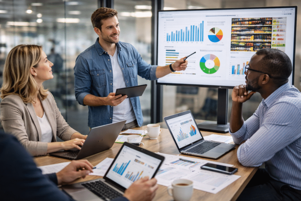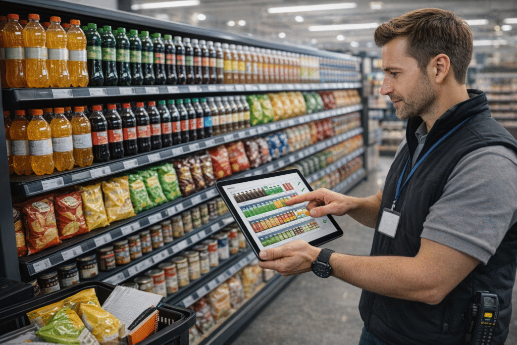 Prekių ekspozicijos ir priežiūros valdymo sistema, skirta greitam, tiksliam ir standartizuotam merchandizing procesui.